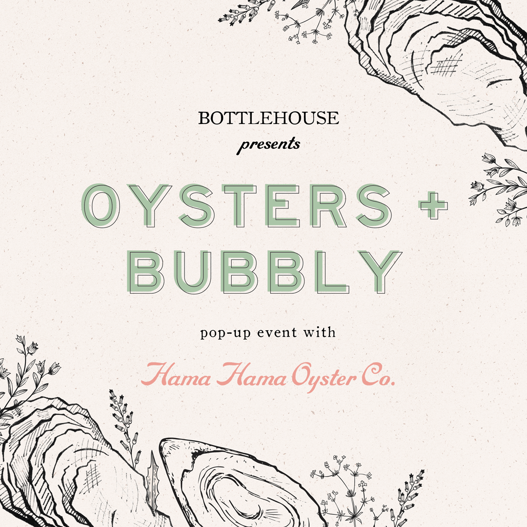 Get ready to sip, shuck, and soak in good vibes! Gather at our next Oysters + Bubbly Pop-Up event with our friends from Hama Hama Oyster Co. Ticket includes half-dozen Hama Hama oysters, curated bubbly tasting experience, and seasonal amuse-bouche.