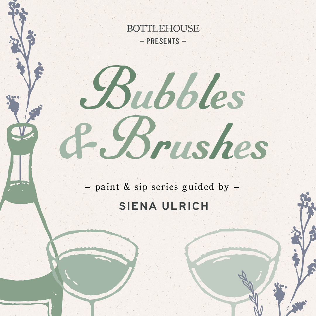 Enjoy something bubbly and let your creative juices flow! Join us for a series of relaxing evenings with guided painting, refreshing sips, and good company led by artist Siena Ulrich. All skill levels are welcome– just come ready to unwind and have fun! Ticket includes all painting supplies, glass of bubbly (N/A options available), and lite bite.